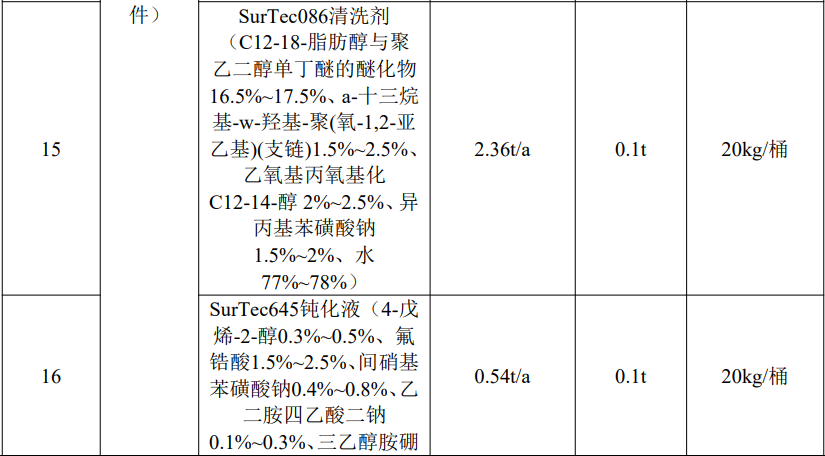 根據上表核算內容,底漆與固化劑、稀釋劑按照7:1:0.4進行調配,面漆與固化劑按照4:1進行調配。項目使用的溶劑型涂料底漆(即用狀態下)年使用量為3.51t/a,面漆(即用狀態下)年使用量為3.49t/a。故底漆年用量為2.92t/a,底漆固化劑年用量為0.42t/a,底漆稀釋劑年用量為0.17t/a;面漆年用量為2.79t/a,面漆固化劑年用量為0.70t/a;塑粉年用量為40t/a。本次評價采用企業提供的MSDS中數據,按照底漆:固化劑:稀釋劑=7:1:0.4、面漆:固化劑=4:1的調配比例,確定本次工程使用涂料主要組分及揮發性有機廢氣(以非甲烷總烴計)占比情況。
