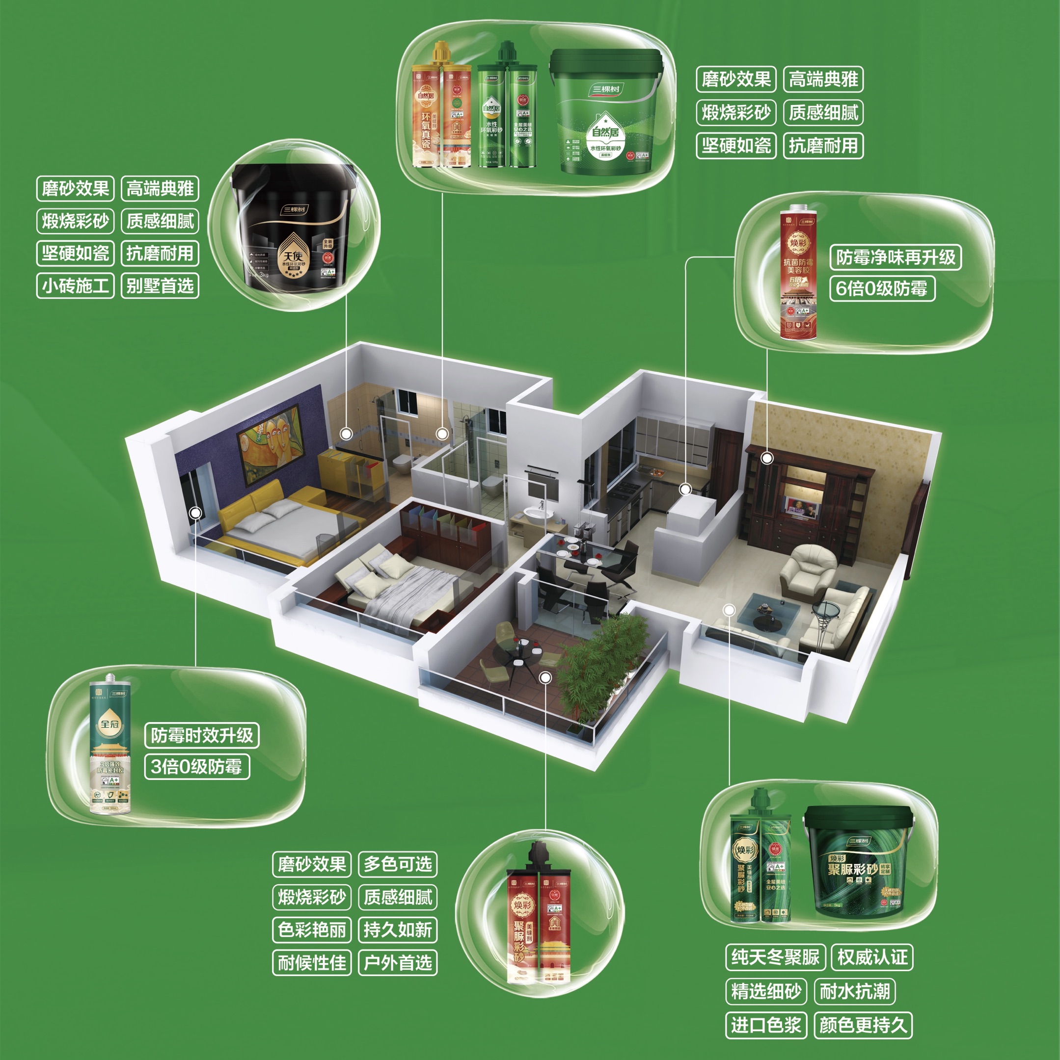 在產(chǎn)品布局上,三棵樹全屋美縫已形成完整的產(chǎn)品矩陣,覆蓋聚脲、氫化、環(huán)氧、硅酮醇型及MS美容膠等多類材料體系,能夠適配不同場(chǎng)景的功能與美學(xué)需求,實(shí)現(xiàn)從基礎(chǔ)防護(hù)到整體空間美學(xué)的全面升級(jí)。
