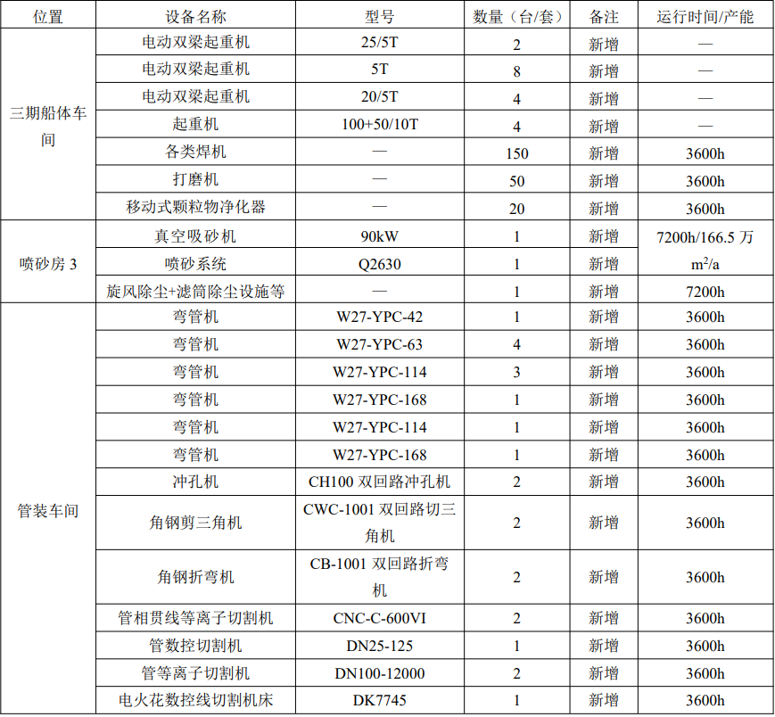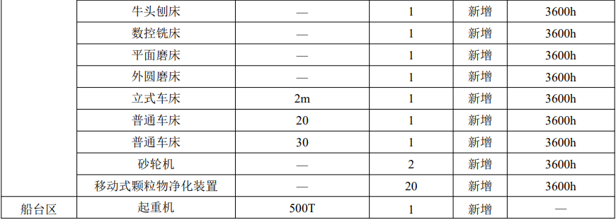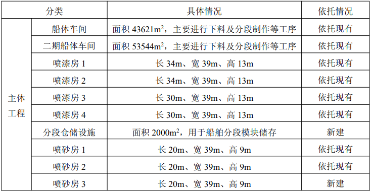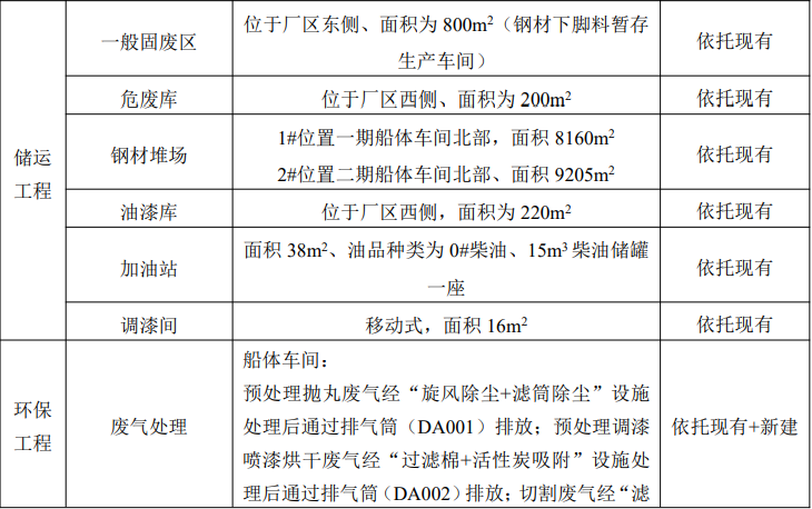根據上式計算,油漆理論使用量(包含稀釋劑、固化劑等)分別為環24.954ta、防污漆5.098ta、聚氨酯面漆0.771ta,根據現有工程生產經驗,企業提供油漆用量分別為環氧漆26.643ta、防污漆5.481t/a、聚氨酯面漆0.879ta,本次環評采用企業提供的油漆等用量。