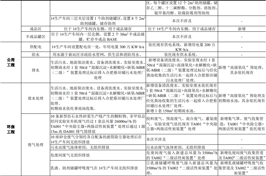 技改擴(kuò)建項(xiàng)目建設(shè)內(nèi)容一覽表