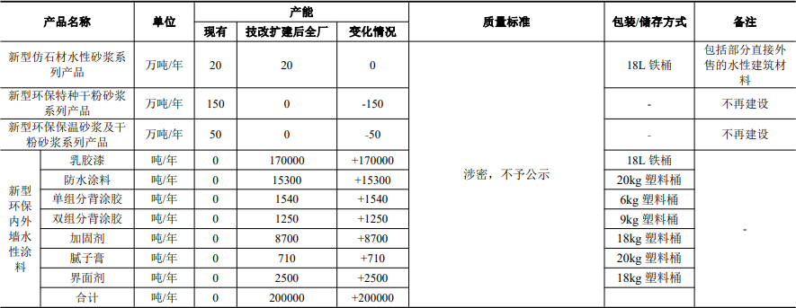技改擴(kuò)建項(xiàng)目主要產(chǎn)品及產(chǎn)能情況一覽表
