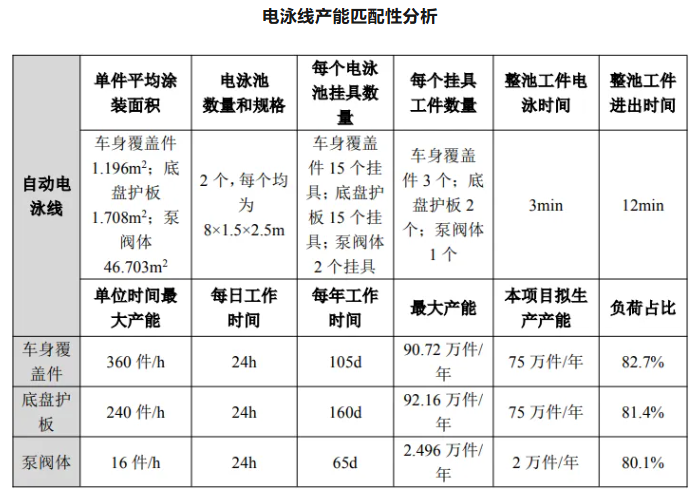 項目噴漆為產品—自動線噴漆線。根據《噴漆工序有機廢氣源強的估算比較》 可知,電泳涂裝效率為 95%以上;根據參照《汽車工業污染防治可行技術指南》(HJ1181-2021): 表 9“采用電泳超濾技術可使電泳材料利用率達到98%以上”,保守起見本項目電泳浸涂效率取95%。 參考《廣東省表面涂裝汽車制造業)揮發性有機廢氣治理技術指南》(粵環 (2015)4 號)中2.1.3 涂裝技術可知,靜電噴涂涂料利用率約為60~70%,保守起見本次評價取 60%。