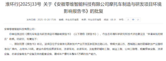 你單位報送的《摩托車制造與研發(fā)項目環(huán)境影響報告書》(以下簡稱《報告書》)、市生態(tài)環(huán)境科學(xué)研究所技術(shù)評估意見及“申請審批的報告”收悉。經(jīng)研究,批復(fù)如下: