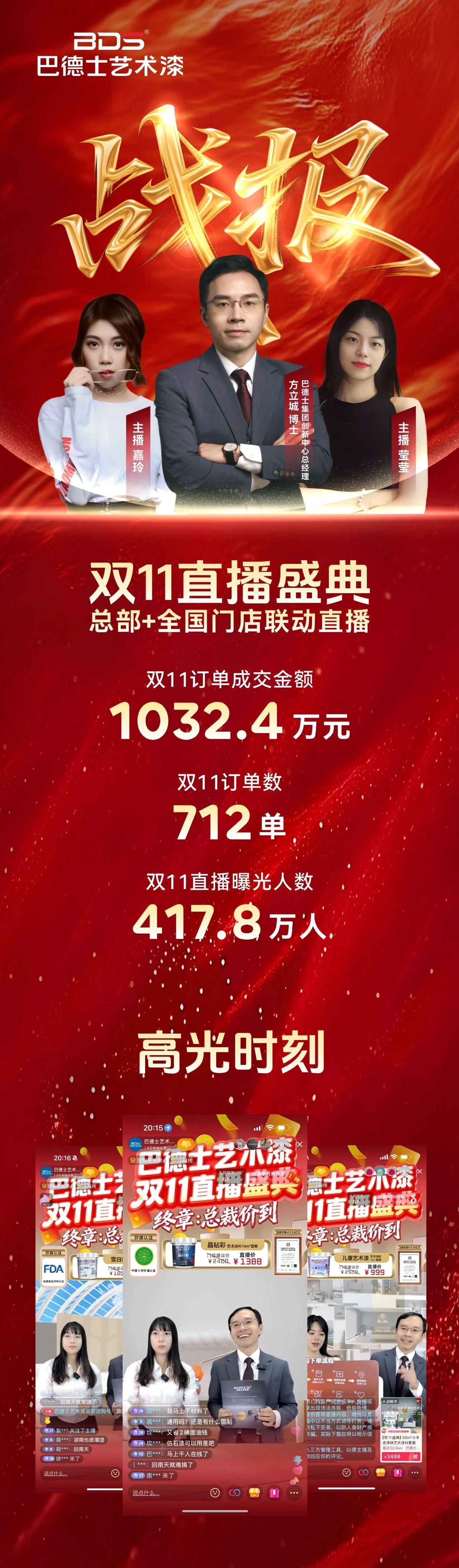 從總部運營到門店執(zhí)行,從內(nèi)容創(chuàng)作到客服承接,各部門緊密配合;全國經(jīng)銷商積極轉(zhuǎn)發(fā)引流,共同為終端業(yè)主提供專業(yè)、高效的服務(wù)體驗。這是巴德士體系化作戰(zhàn)能力的集中體現(xiàn)。