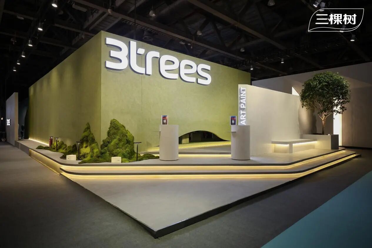 三棵樹完整呈現出“七位一體”一站式家居換新服務體系。從乳膠漆、藝術漆、仿石漆等核心涂料,到小森板材、大漆產品等配套材料,展現了可以覆蓋產品、設計、服務的全鏈條能力。