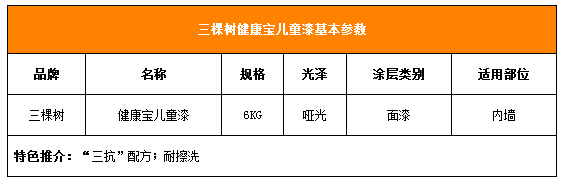 三棵樹健康寶兒童漆采用納米Ag+抗菌技術,具有全方位活性氧強效抗菌功能,最新凈味技術,添加特殊除味因子,有效去除室內異味,保證孩子健康成長。