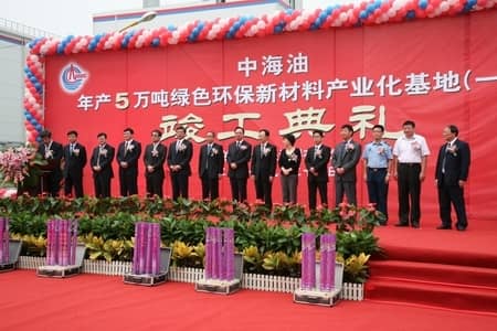 2011年9月25日,中海油年產(chǎn)5萬噸綠色環(huán)保新材料產(chǎn)業(yè)化基地(一期)竣工。圖為竣工典禮現(xiàn)場(chǎng)