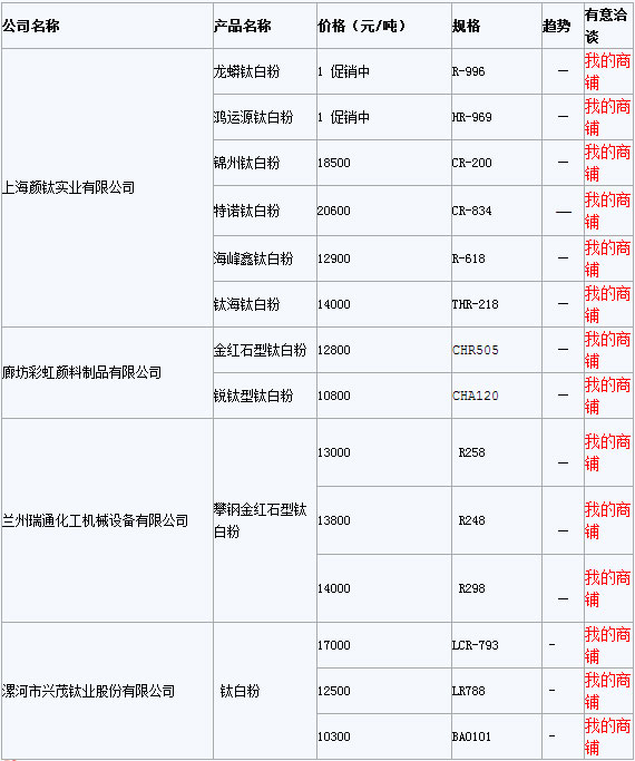 出廠價格基本持穩,廊坊彩虹顏料制品有限公司鈦白粉含稅出廠價格保持不變。詳情見下面表格數據。