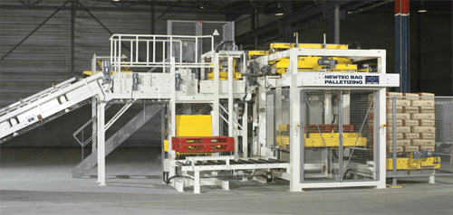 在自動化措施方面,該系統使用全自動插袋技術,由于該技術適合各種工業化的袋子,能夠在使用中節約企業成本;其次在全自動系統中,能夠實現自動卸袋、自動輸送和碼垛,并且具備自動繞膜、套膜以及自動裝車功能;在生產過程中,實現完全潔凈自動化生產。