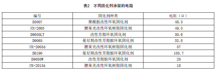 (1)選取了幾種通用和新型固化劑,以601環(huán)氧樹脂為基本樹脂,通過改變涂料配方中的固化劑來制得不同固化劑種類的環(huán)氧防腐涂層。