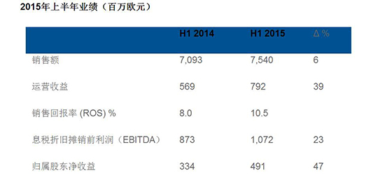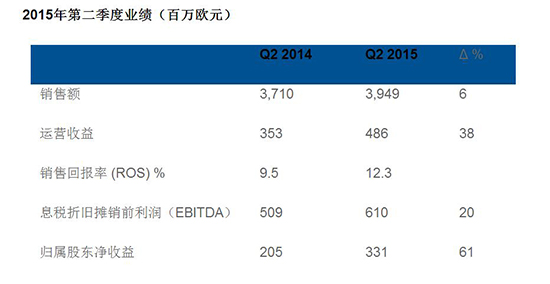 ·第二季度運營收益增長38%,達4.86億歐元(2014年同期為3.53億歐元)