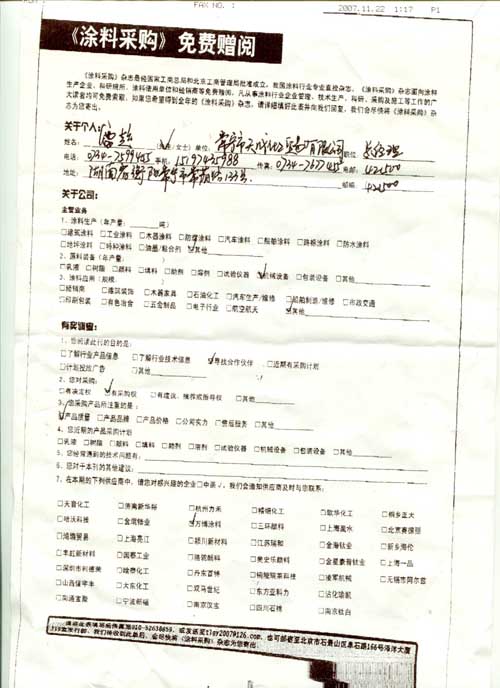 《涂料采購》回執單:天成化工