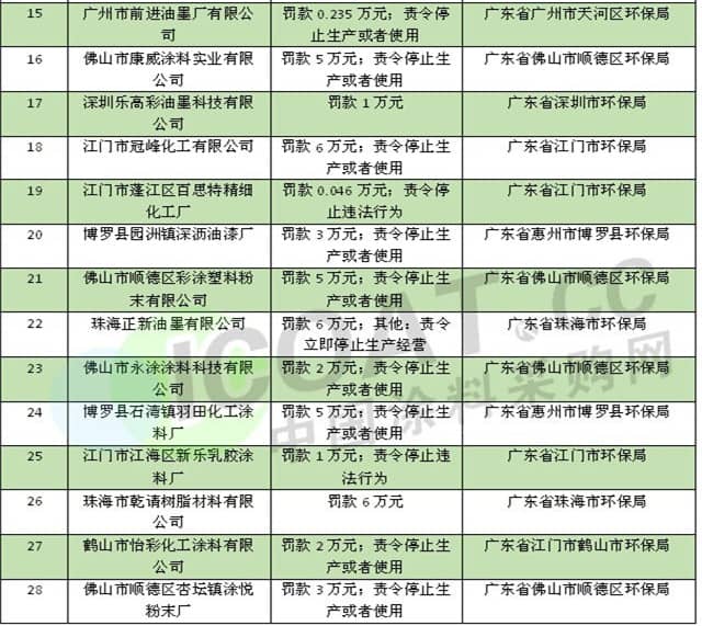 廣東省違規(guī)處罰企業(yè)名單(涂料、原材料部分)